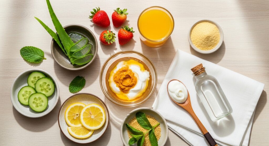 खीरा summer skin care का सबसे classic Indian remedy है। इसलिए, खीरे को blend करके face pack बनाएं और 15 मिनट लगाएं। इसके अलावा, cucumber में 96% water होता है जो skin को deep hydrate करता है। नतीजतन, skin cool, fresh और glowing बनती है।